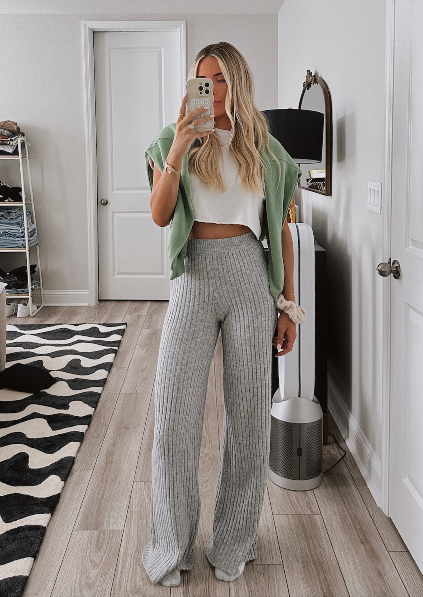 Cozy Ribbed Knit Set Heathered Fern Khanh